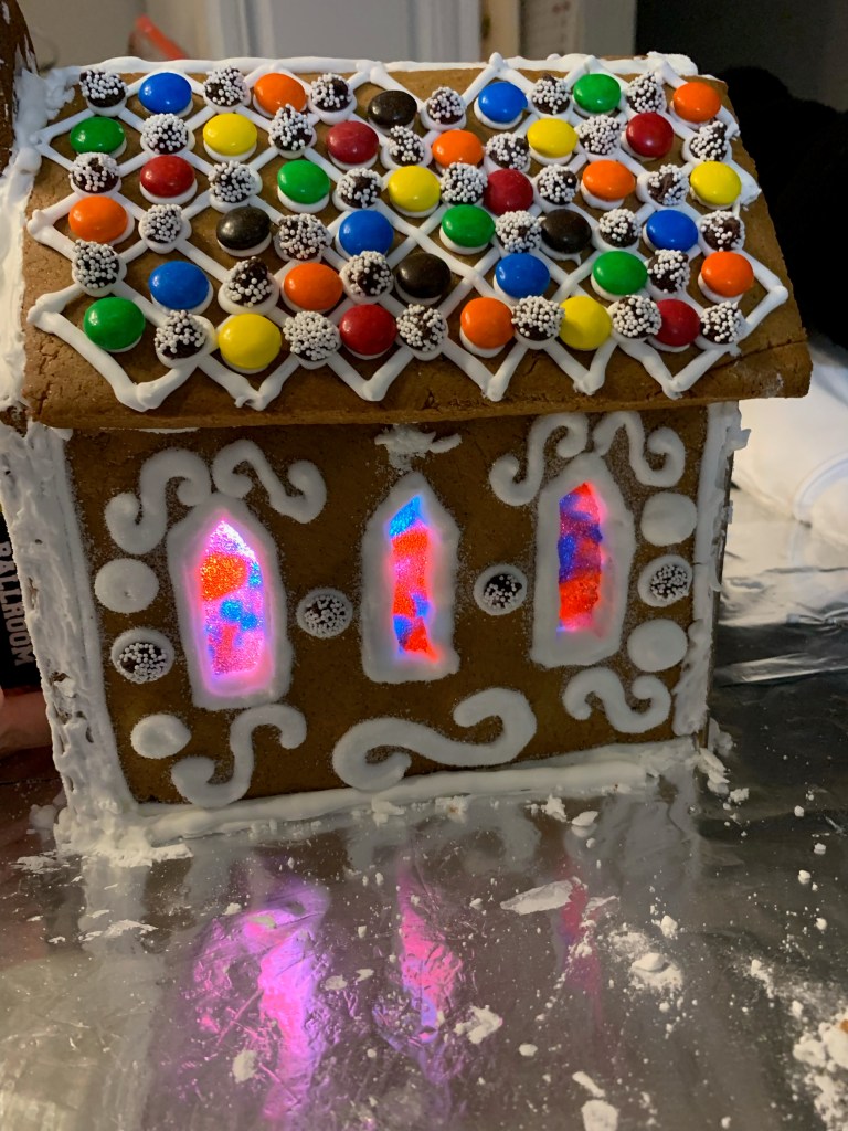 My siblings and I started a tradition where we make custom gingerbread housesat Christmastime by creating fun designs, cutting out custom parts, and spending hours decorating it.
